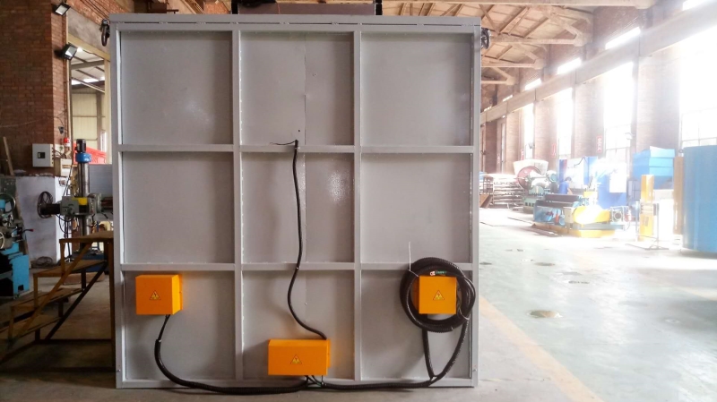 1)、采用槽鋼與方管焊接整體框架,內(nèi)覆熱軋鋼板。