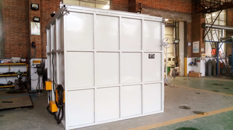 二,可以橫著立放2件,直經(jīng)1.8米X1米鋁線輪,電源380V/3相,使用溫度500℃,功率100Kw。主要用于產(chǎn)品的中低溫?zé)崽幚硪约邦A(yù)熱、烘干等的周期性作業(yè)爐。